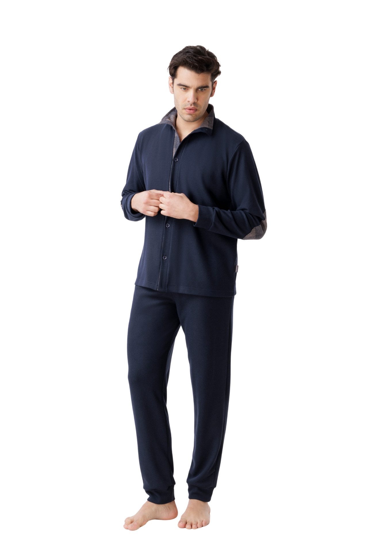 Questo pigiama uomo unisce eleganza, comfort e funzionalità grazie al tessuto Punto Milano Silk Touch, morbido, caldo e piacevolmente setoso al tatto.
