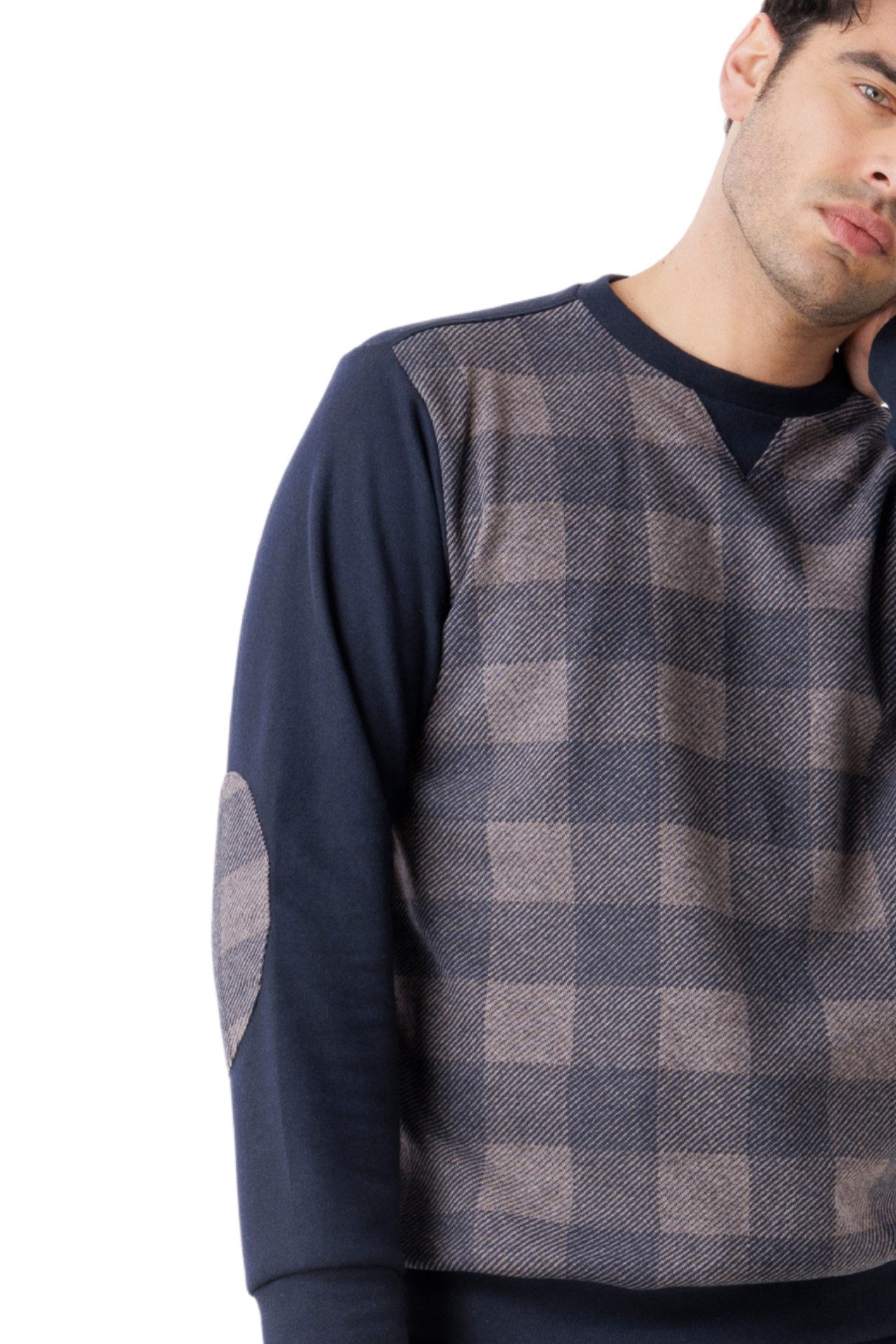 La maglia presenta un elegante inserto frontale a motivo quadri, tono su tono, che aggiunge un tocco sofisticato al design pulito e moderno. Le maniche in tinta unita e i polsini elasticizzati assicurano una vestibilità confortevole e pratica.