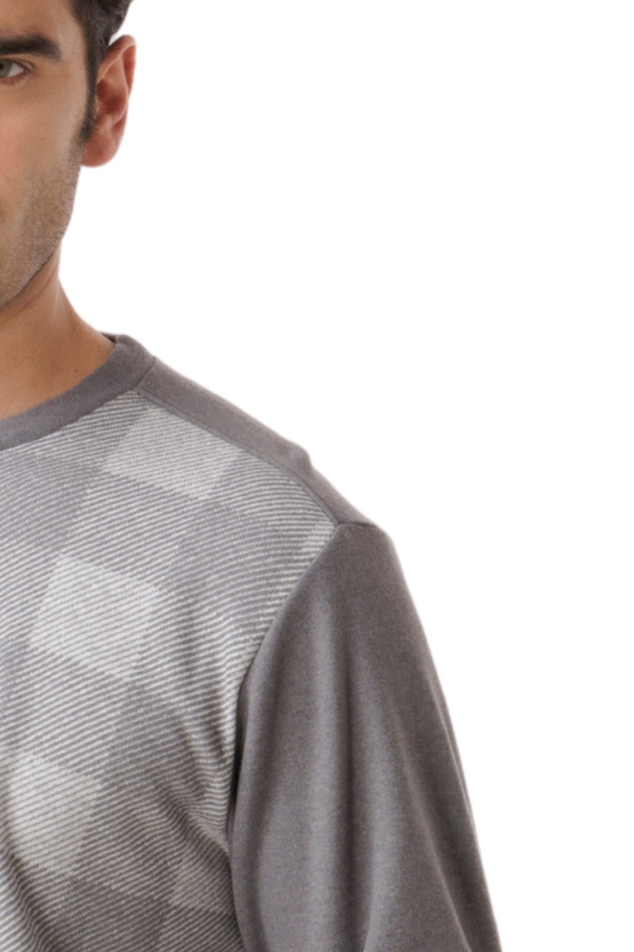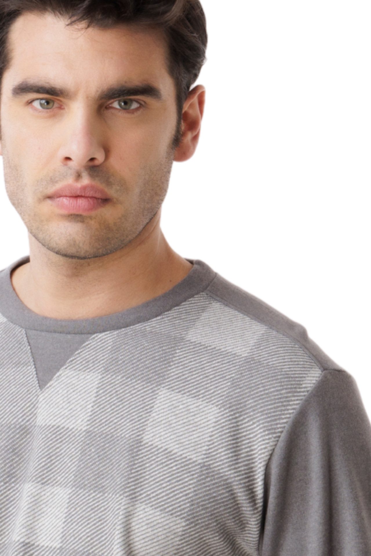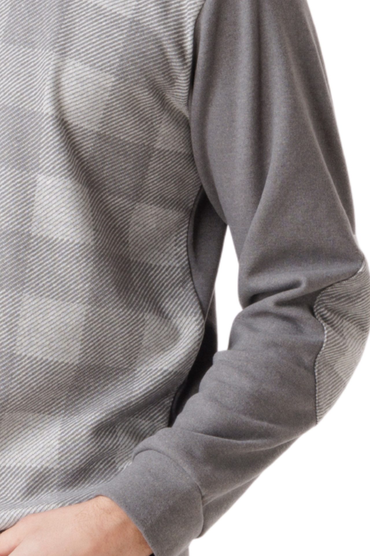 La maglia presenta un elegante inserto frontale a motivo quadri, tono su tono, che aggiunge un tocco sofisticato al design pulito e moderno. Le maniche in tinta unita e i polsini elasticizzati assicurano una vestibilità confortevole e pratica.