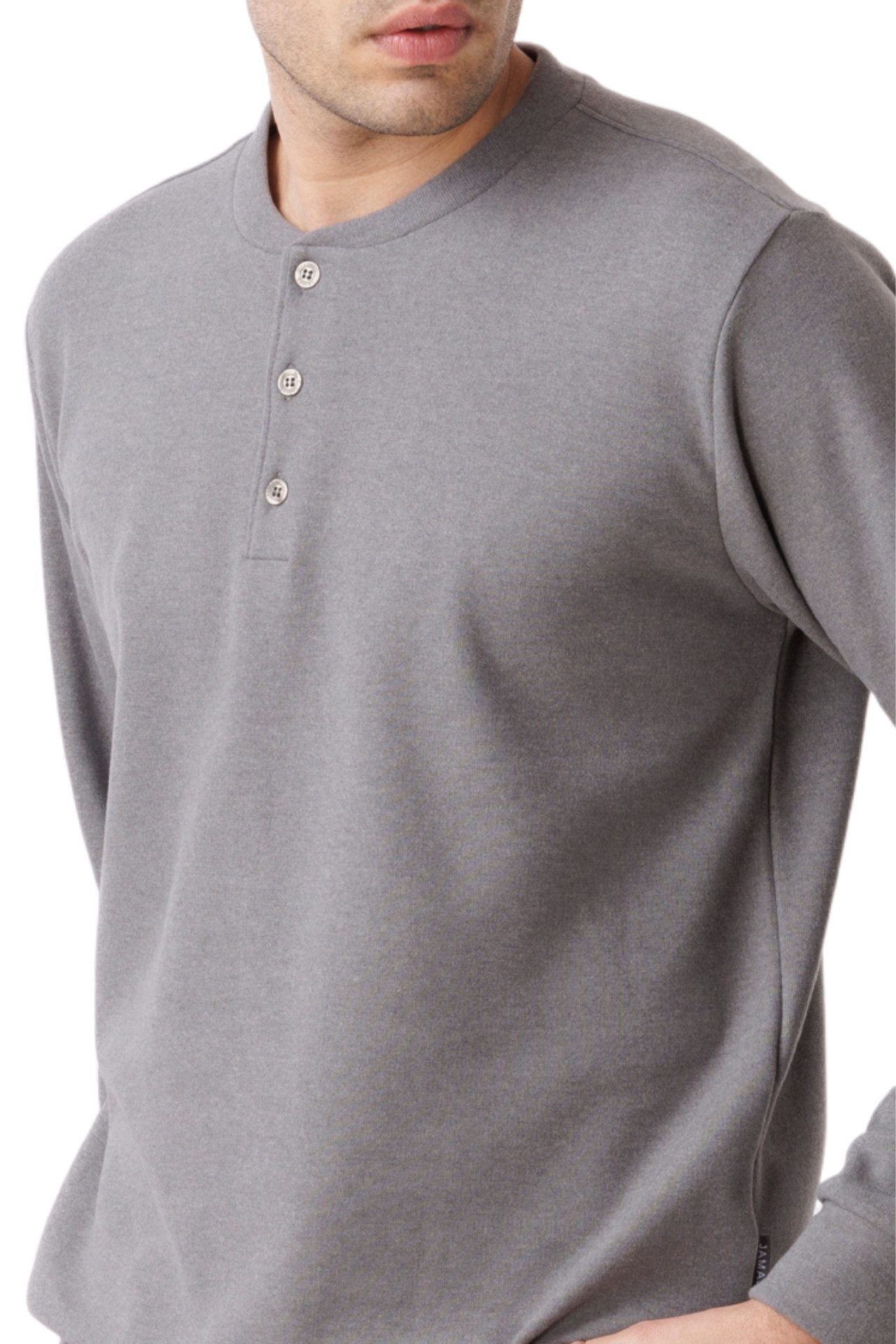 La maglia, dal design pulito con scollatura Serafino a tre bottoni, è realizzata in morbidissimo Punto Milano Silk Touch: un tessuto caldo, avvolgente e naturalmente elasticizzato, che assicura comfort e massima libertà di movimento.