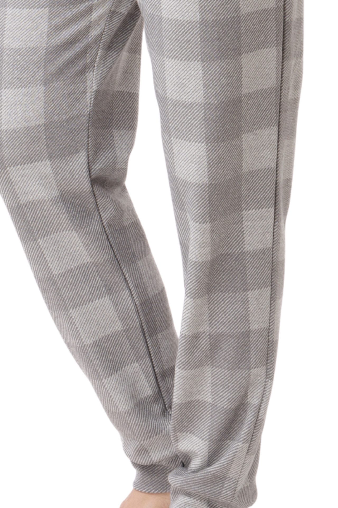 Il pantalone, caratterizzato da un pattern quadrettato tono su tono, aggiunge un tocco di ricercatezza al look. Il fondo caviglia con polsino assicura una vestibilità comoda e ordinata, perfetta per la stagione più fredda.